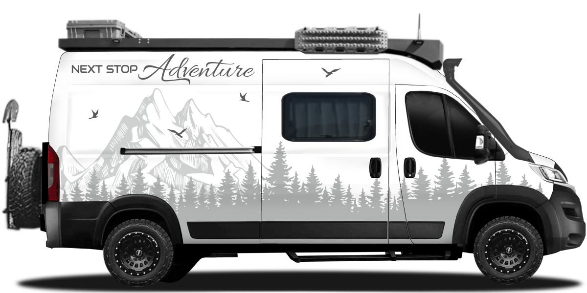 Autoaufkleber NEXT STOP Adventure | Set für beide Fahrzeugseiten