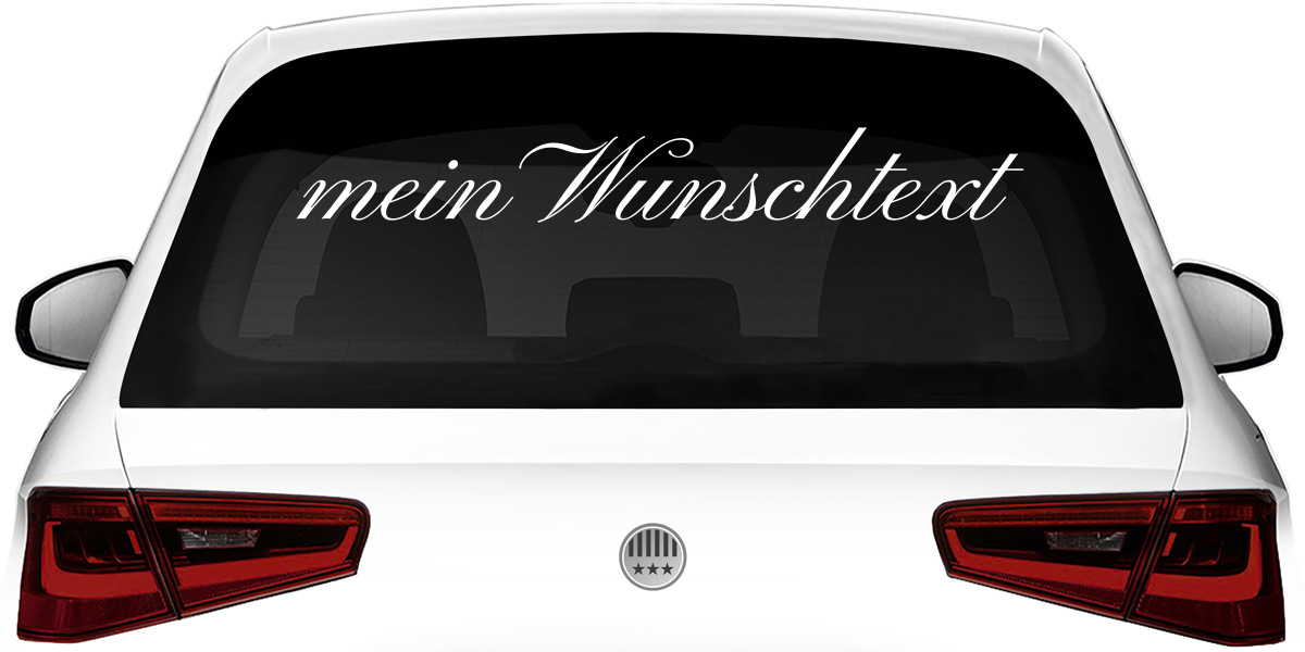 Wunschtext? Weil mit diesem Text Deine Wünsche wahr werden. Du kannst mit dem Sticker fürs Auto Namen, Begriffe oder kurze Slogans an Dein Auto bringen, und es damit zu einem unverwechselbaren Teilnehmer des Straßenverkehrs machen. Dekoriere Dein Auto mit solch einem Namensaufkleber und überrasche Deine Familie und Freunde damit.