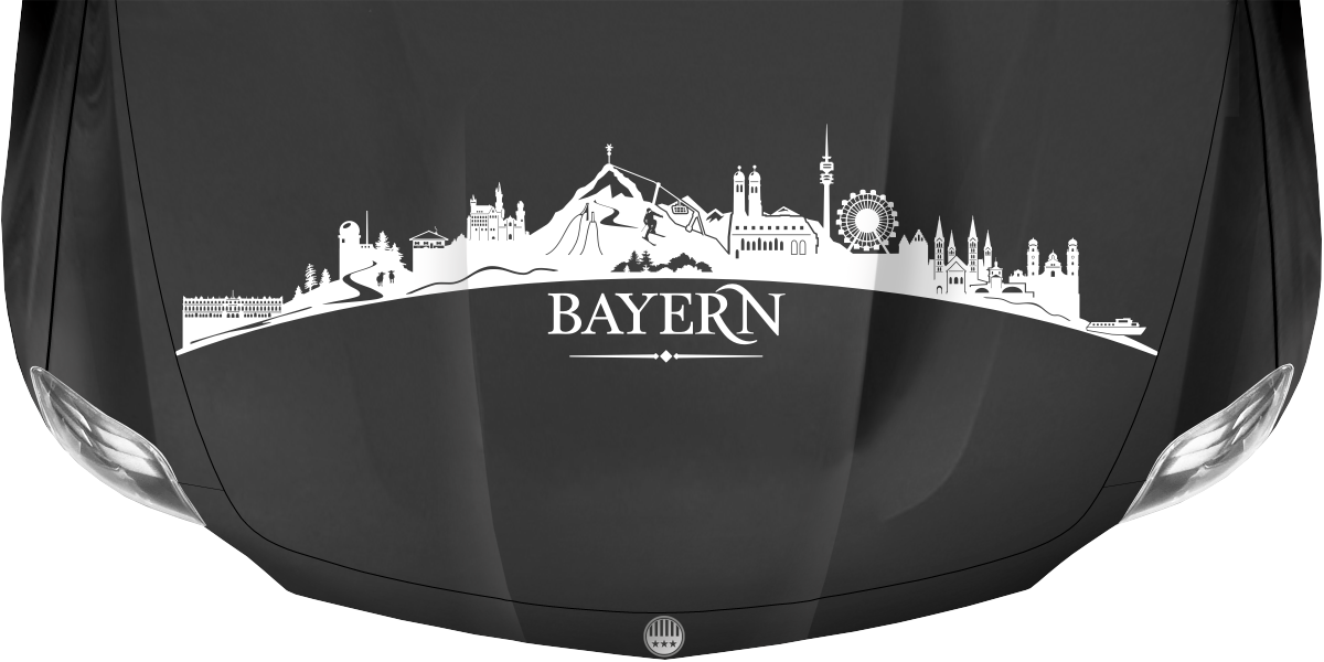 Bayerns eindrucksvolle Sehenswürdigkeiten als Skyline-Aufkleber für die Motorhaube