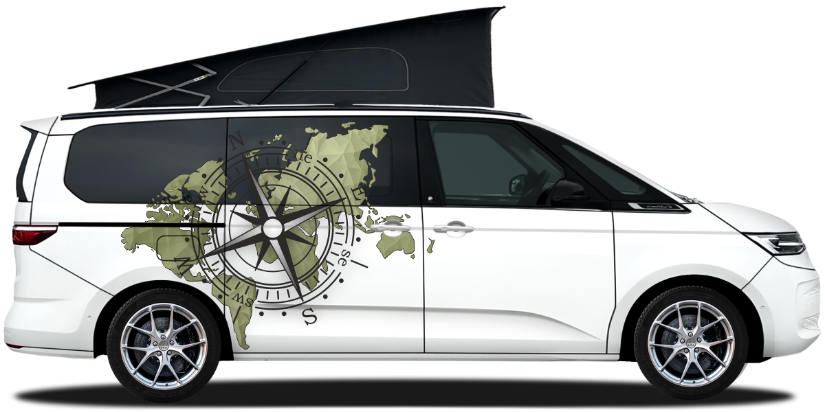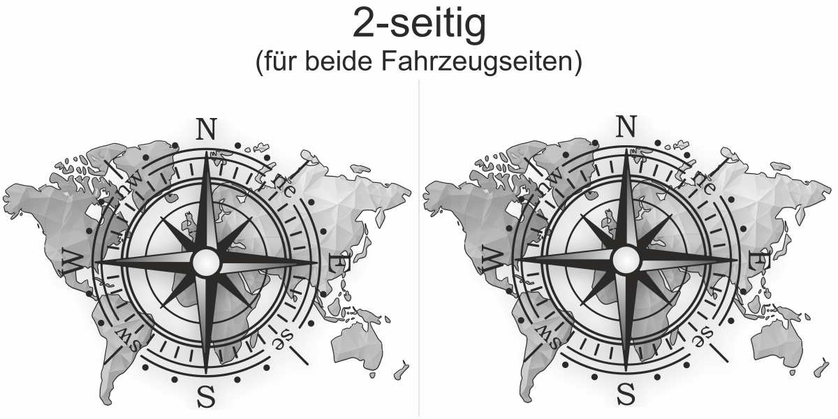 Wohnmobildekor Weltkarte mit Windrose | Set für beide Fahrzeugseiten