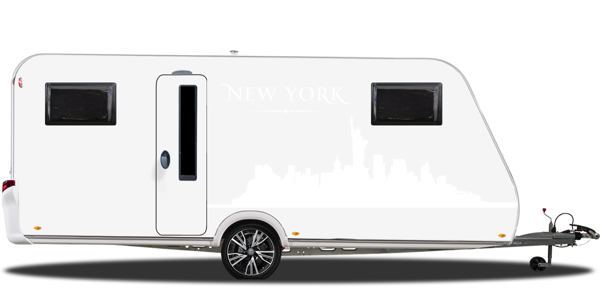 Gestalte Dein Wohnmobil oder Deinen Wohnwagen mit der Skyline von New York. Mit diesem originellen Aufkleber wirst Du alle Blicke auf Dich ziehen.