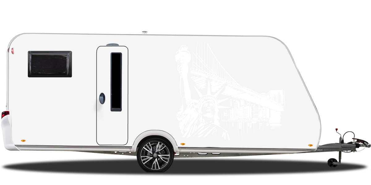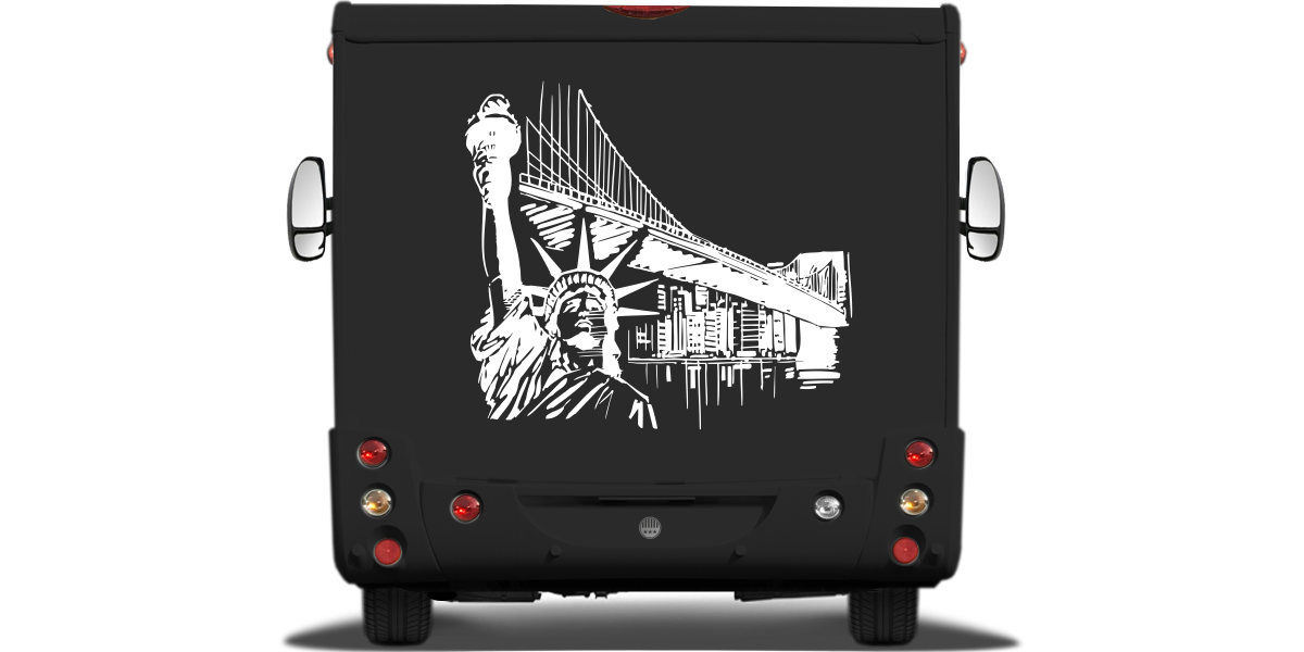 Gestalte Dein Wohnmobil oder Deinen Wohnwagen mit der Skyline von New York. Mit diesem originellen Aufkleber wirst Du alle Blicke auf Dich ziehen.